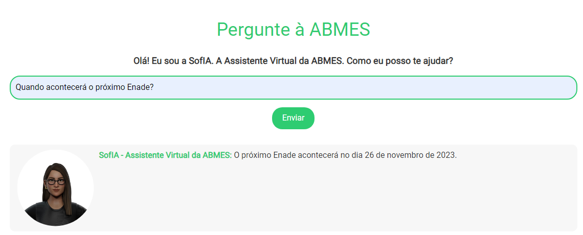 Com a SofIA, o "Pergunte à ABMES" representa um salto no atendimento personalizado, trazendo agilidade e precisão na resposta às demandas dos associados. Além disso, a assistente virtual será constantemente atualizada com as mais recentes inovações tecnológicas da ABMES, garantindo que seus associados estejam sempre à frente das tendências educacionais.