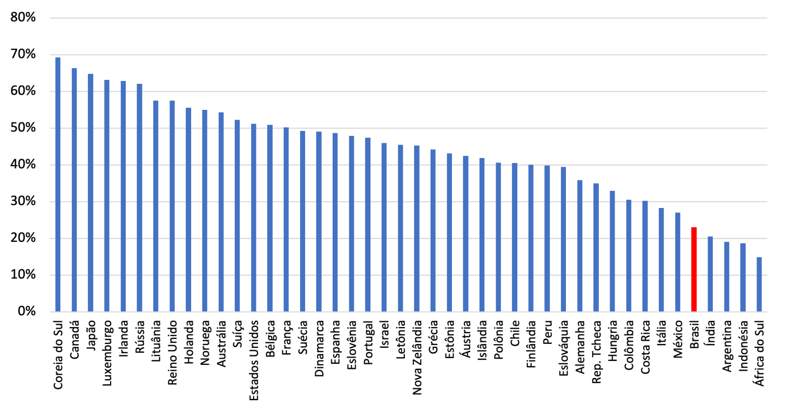 Figura 3 - Taxa de Escolaridade Superior em países selecionados (fonte: OCDE, 2021)