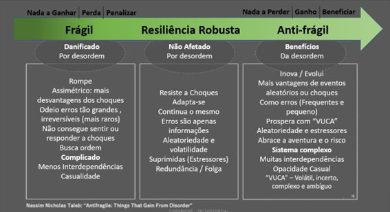O texto aborda sobre a diferença entre sistemas frágeis e antifrágeis. Enquanto os sistemas frágeis são danificados pelos choques, os antifrágeis se fortalecem a partir da desordem. Porém, muitos sistemas econômicos e empresas seguem uma estratégia estereotipada de otimização e hipereficiência, tornando-os frágeis. Para permanecer relevante em um mundo dinâmico, é necessário criar ecossistemas sociais e econômicos inovadores capazes de se fortalecer sob estresse e pressão.