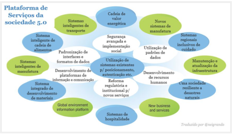 Trata-se de uma sociedade que usa a inteligência e a imaginação para sua própria transformação. A Sociedade 5.0 prevê um sistema socioeconômico sustentável e inclusivo, alimentado por tecnologias digitais como análise de big data, inteligência artificial (AI), Internet das Coisas e robótica. O “sistema ciberfísico”, no qual o ciberespaço e o espaço físico estão fortemente integrados, torna-se um modo tecnológico generalizado que suporta a Sociedade 5.0.
