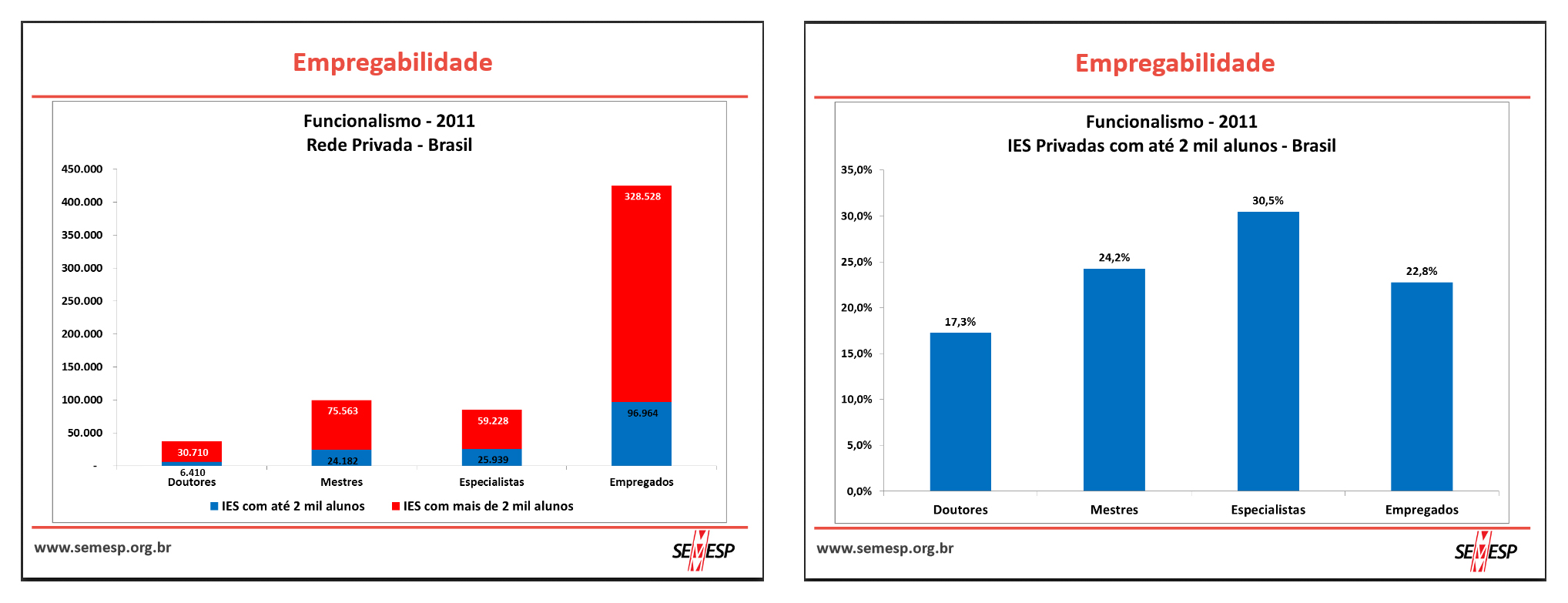 Para conseguir autorização para novos cursos, as IES precisam cumprir critérios do MEC em relação à empregabilidade de docentes com titulação de mestres e doutores e observar o regime trabalhista, que exige dedicação mínima de 20 horas semanais. Esse percentual é questionável por gestores da área, que acreditam ser melhor ter nas IES professores com experiências práticas.